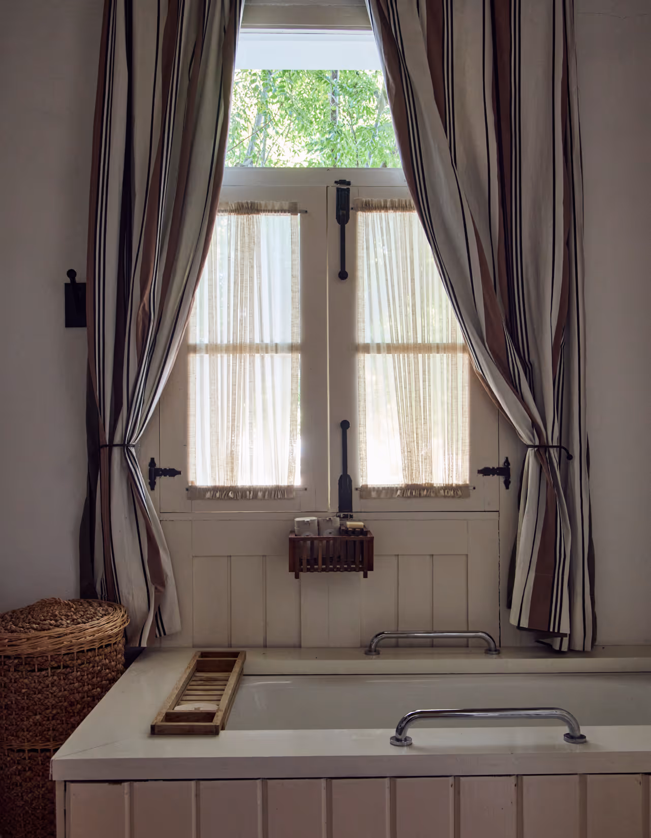 A luxurious suite with a spacious double bathroom, including 2 walk-in shower and a beautiful bathtub set beside a cozy chiminea. Spacious room with beautiful garden views.